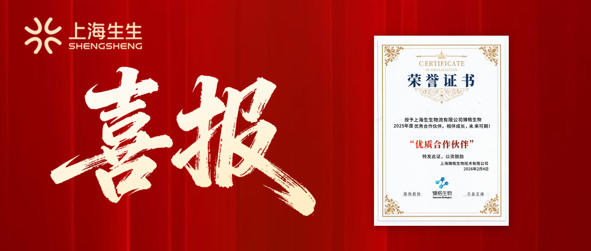 2026年2月4日,凭借长期高质量的服务和杰出的合作表现,生生荣获臻格生物“2025年度优质合作伙伴”奖,这是对我们过往工作的高度肯定。 自 2018 年开启合作以来,生生物流始终与臻格生物相伴成长,在物流保障、供应链协同等方面深度绑定,为其从临床前开发到商业化生产的全方位CDMO服务提供了稳定可靠的冷链物流支撑。在2025年,生生物流更是其相关领域的唯一合作伙伴。&